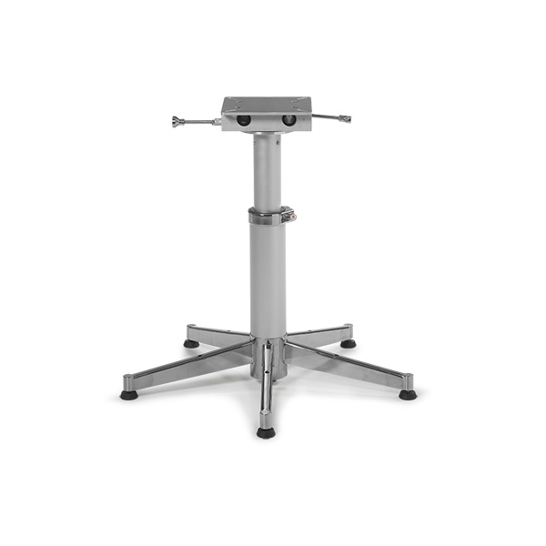 Neu entwickelter »Heavy Duty« Stuhlsockel mit integrierter Gasfeder für die Höhenverstellung und mit »Quick-Release«-Spannverschluß. Drehbar 360°, präzise Arretierung in 22,5° Intervallen.